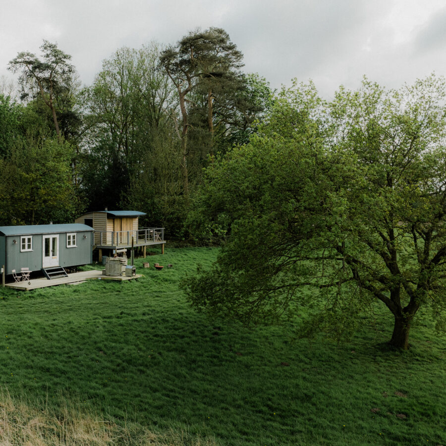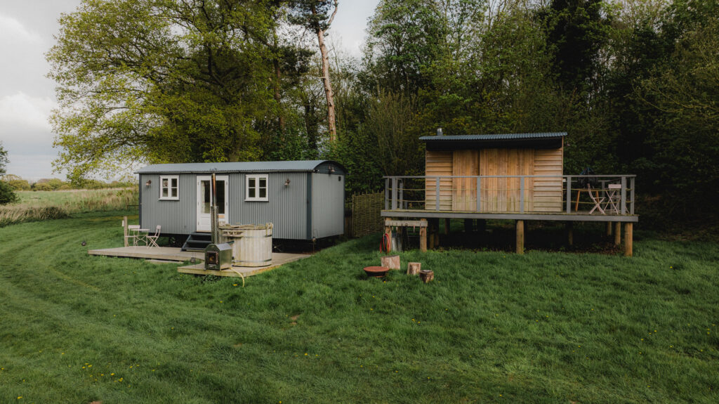 Tucked beside a tranquil woodland copse and overlooking wildflower meadows and a quiet lake, Orchid and Cowslip at Honeypot Meadow offer a truly peaceful escape for glamping in Norfolk.